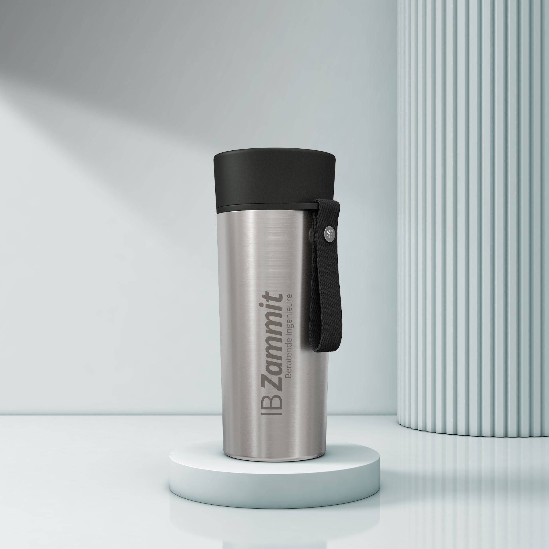 Unsere nachhaltigen Coffee-to-go-Becher aus doppelwandigem Edelstahl mit Lasergravur des Firmenlogos sind das perfekte Mittel zur Präsentation Ihres Unternehmens. Überzeugen Sie Ihre Kunden von der Qualität Ihres Unternehmens mit unseren hochwertigen Coffee-to-go-Bechern!